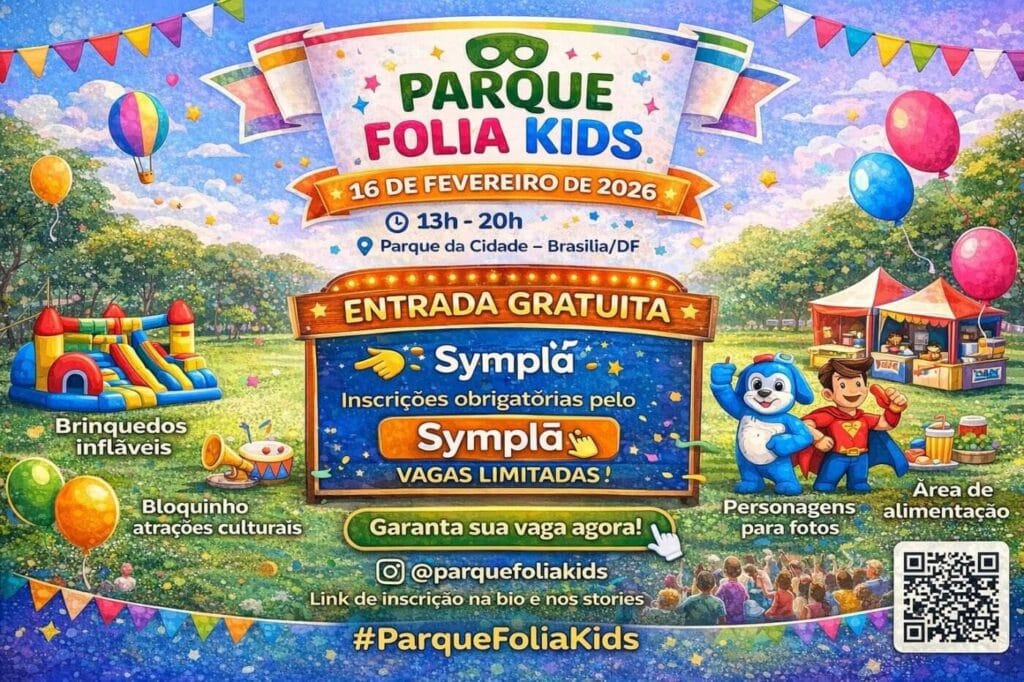 O Parque Folia Kids é um evento cultural infantil de carnaval, pensado para crianças e famílias, com atividades lúdicas, recreativas e atrações culturais em um ambiente seguro, estruturado e ao ar livre no Parque da Cidade, em Brasília. Data: 16 de fevereiro de 2026 Horário: 13h às 20h Local: Parque da Cidade – Brasília/DF O … Continue lendo Parque Folia Kids – Carnaval Infantil no Parque da Cidade