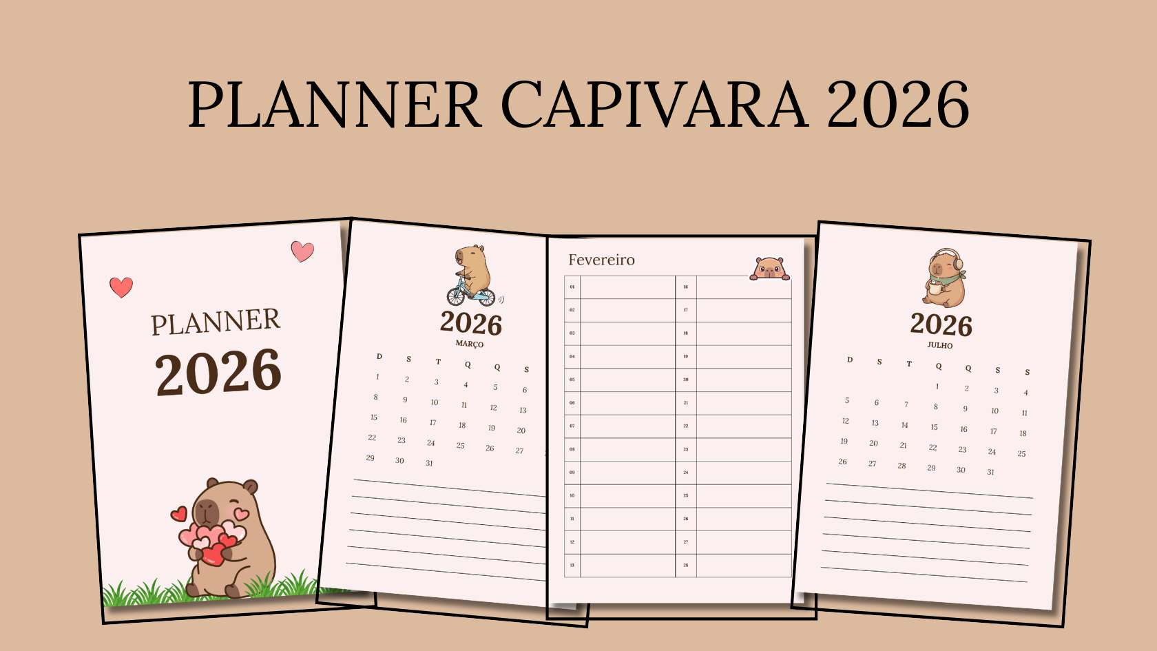 O Planner 2026 Capivara é um material simples, funcional e acolhedor, pensado especialmente para quem precisa organizar a rotina sem complicação — e sem abrir mão da leveza.